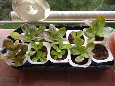 Además enlazo el tema de los hongos, con mis siguientes hortalizas, las lechugas, tenía unas cuantas en las macetas, y el otro día fui a cortar unas para ensalada, y entonces descubrí horrorizada, que todas tenían algunas hojas con hongos. Y aquí si que no había duda, porque el hongo deja algo muy característico, que es como una especie de polvillo blanco que cubre la hoja. Evidentemente las hojas que tenían este polvillo blanco estaban enfermas como las hojas de las espinacas. Igualito, igualito. Menos mal que a pesar de eso pude recuperar unas cuantas. Y menos mal también que tengo plantero de lechugas, así que este fin de semana, plantaré unas en lugar de las otras.