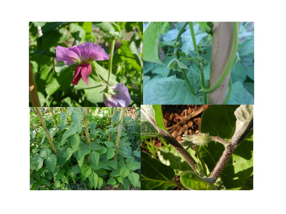 | Flor de tirabeque, futuras flores de judia, planta de judias, flor de berenjena |