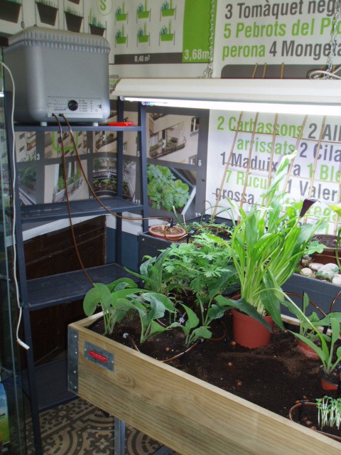 Sistema Claber instalado en una mesa de cultivo en la tienda MAYOLAS