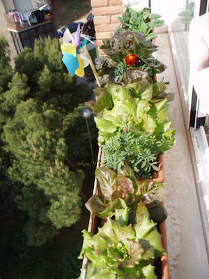 Esta foto es de nuestra ventana, aunque tengamos poco espacio, podemos optimizarlo adaptándonos a las medidas y eligiendo los cultivos adecuados.