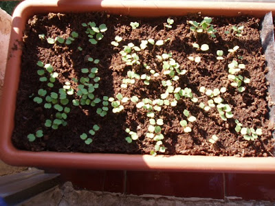 Aquí teneis fotos de rúcula, fijaros que el 11 de Abril las plantulas empezaron a crecer, y mirad como estan ahora. Y teniendo en cuenta que ya hemos hecho dos ensaladas, es decir ya hemos cortado hojas, y aun así sigue creciendo sin parar.