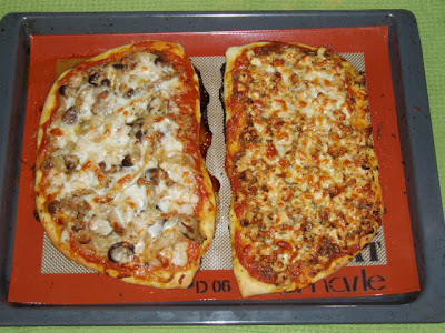 Aquí podeis ver las pizzas antes de meter al horno. La de la izquierda es la mía y la de la derecha la de Javi.