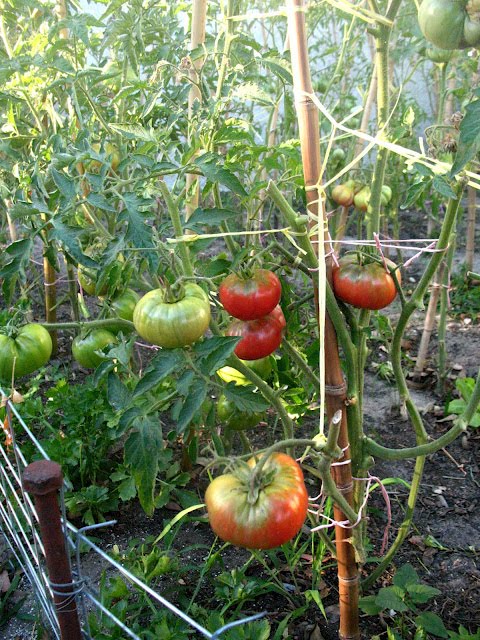 En verano nuestro huerto se vuelca mucho hacia los tomates, Hay tomates por donde mires. Rastreros, entutorados, rojos, amarillos, negros, verdes, rayados, chicos y grandes.