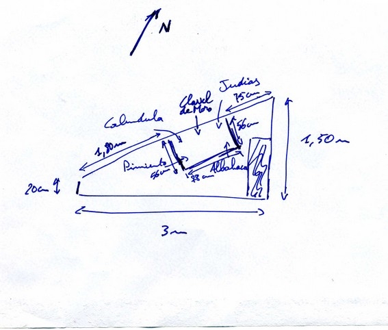 Plano que el marido de Palmira ha dibujado, y que les ha servido para organizar el balcón y el huerto.