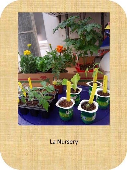 Para los semilleros caseros, hemos creado una “nursery” en el patio de luz (mucha luz y calor en el nuestro), a base de potes de yogures y de muchos mimos.