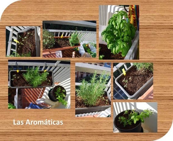 Además hemos plantado aromáticas, mitad partiendo directamente de semillas y otras con planteles: albahaca, romero, salvia, cilantro, tomillo limón, menta, cebollino y mejorana. Y tengo pendientes perejil y maría luisa.