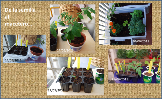 El pasado domingo pasamos a un macetero del huerto mi primera semilla de tomate que había germinado, después la habíamos pasado en un pote de yogur y después a una maceta mediana. Fue emocionante verla en el macetero grande ;o)