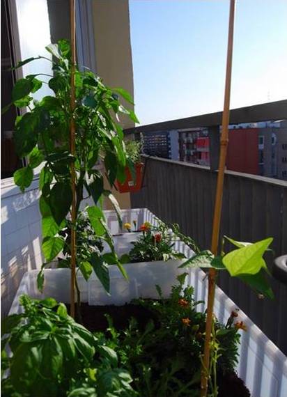 Palmira, tu tienes un balcón pequeño, cuéntanos de cuanto espacio dispones y cómo has planificado el montaje del huerto en tu balcón y la distribución del espacio.