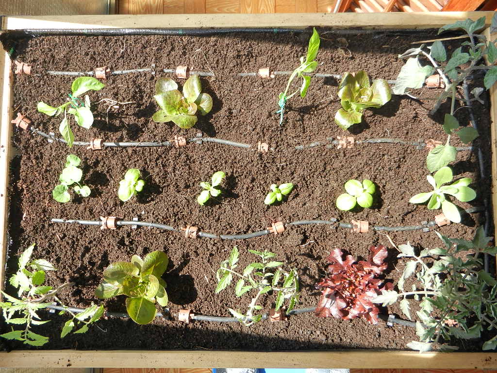 Nos ha sorprendido la velocidad de crecimiento de las hortalizas, os pongo dos fotos con una diferencia de 3 semanas.