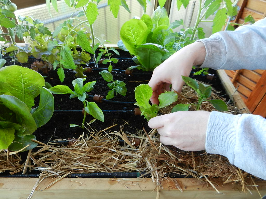 Y como ya sabeis continuamos cultivando en las ventanas las hortalizas más pequeñas y que necesitan menos espacio.