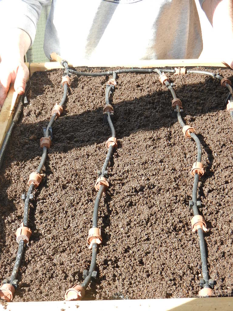 Antes de hacer el trasplante, presentamos sobre el sustrato los planteros que vamos a trasplantar, así vemos si lo que hemos diseñado y pensado vá a quedar bien.