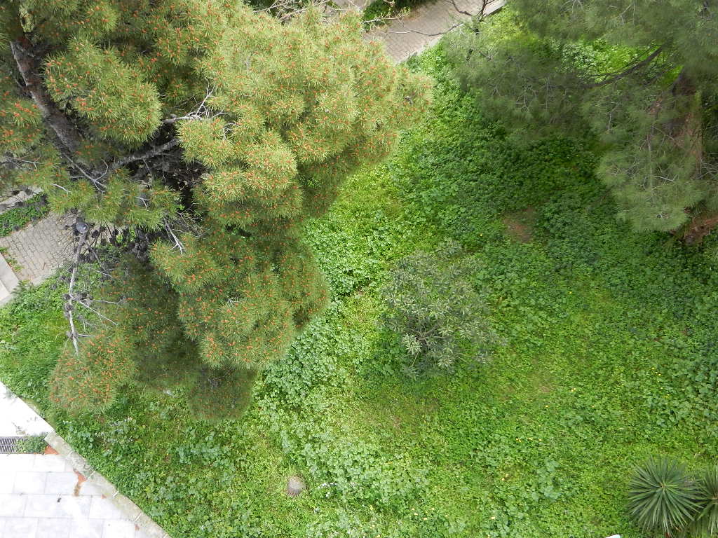 Y hoy lo que hemos hecho es bajar a recoger flores de malva al jardin asilvestrado que tenemos debajo de casa, hay un monton enorme de malvas, y como la primavera es el momento de recolectar estas flores, Javi se ha lanzado tijera en mano a recolectar.      Esta foto la he hecho desde el balcón de casa.