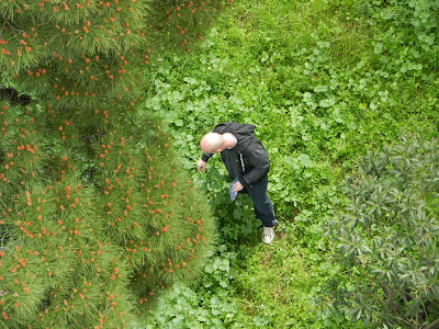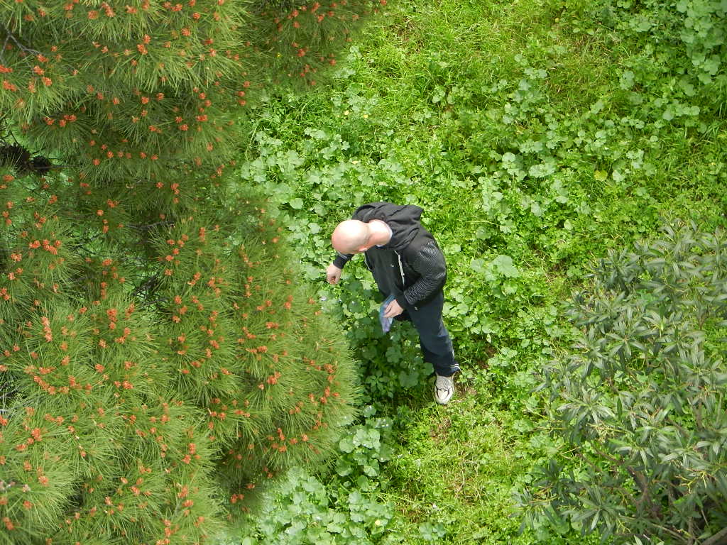 Y hoy lo que hemos hecho es bajar a recoger flores de malva al jardin asilvestrado que tenemos debajo de casa, hay un monton enorme de malvas, y como la primavera es el momento de recolectar estas flores, Javi se ha lanzado tijera en mano a recolectar. Esta foto la he hecho desde el balcón de casa.