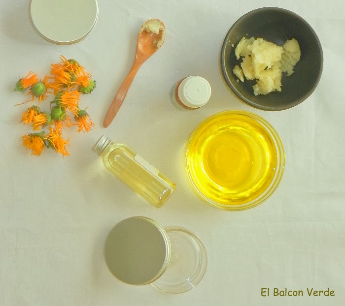 He intentado hacer un paso a paso con fotos para que os resulte más visual la explicación. Pero ya vereis que su elaboración no es complicada. Respecto a los ingredientes básicamente son aceites y mantecas. No lleva nada más. Entonces podeis hacer una formulación adaptada a vuestro gusto. Yo, por ejemplo le he puesto aceite de caléndula que elaboramos nosotros, porque es reparador, y le pongo manteca de cacao porque además de ser muy hidratante le añade a la crema un olor a cacao espectacular. Pero esto es como todo, para gustos los colores.