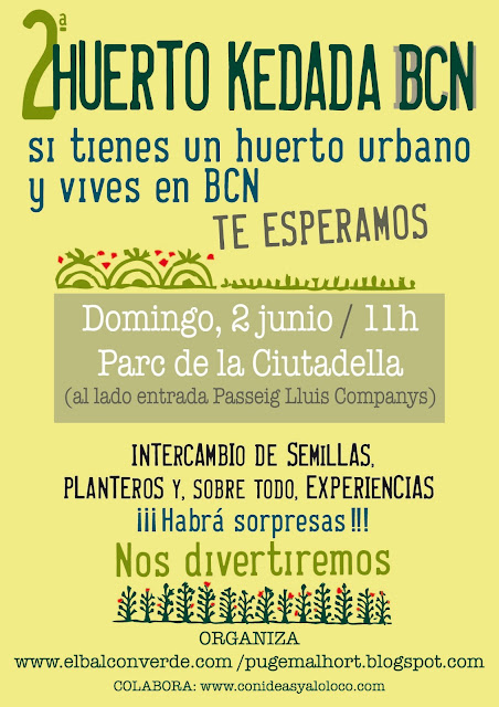 Hemos preparado la segunda HUERTO KEDADA en Barcelona, para que todos los que tenemos un huerto urbano podamos conocernos, intercambiar semillas, planteros y sobre todo compartir nuestras experiencias.