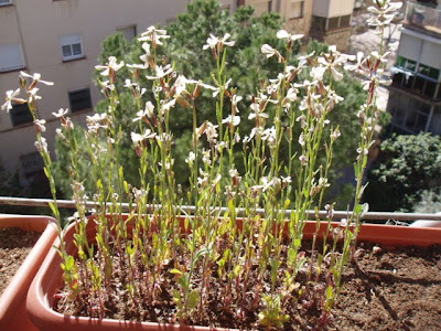 Y me acabo de acordar, que no os he puesto ninguna foto de como está la rúcula, que he tenido este invierno, y que hace ya un tiempo empezó a echar flor, y de momento he pensado dejarla así, y recoger las semillas.